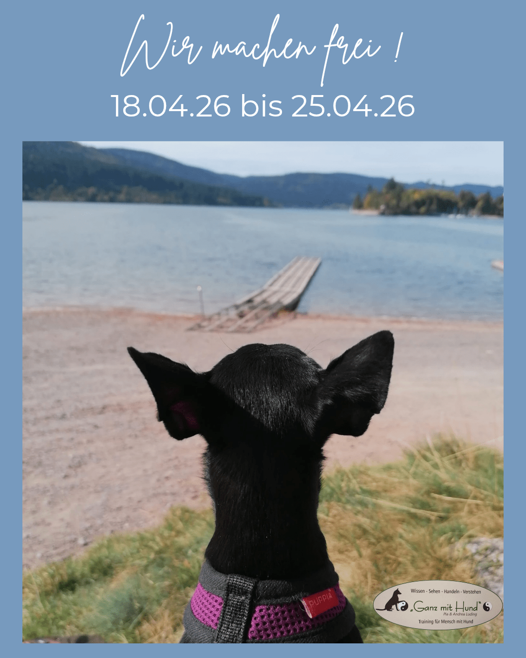 Die Hundeschule bleibt von Samstag 18.04.26 bis Samstag 25.04.26 geschlossen. In dieser Zeit werden auch keine Nachrichten des Kontaktformulars bearbeitet.